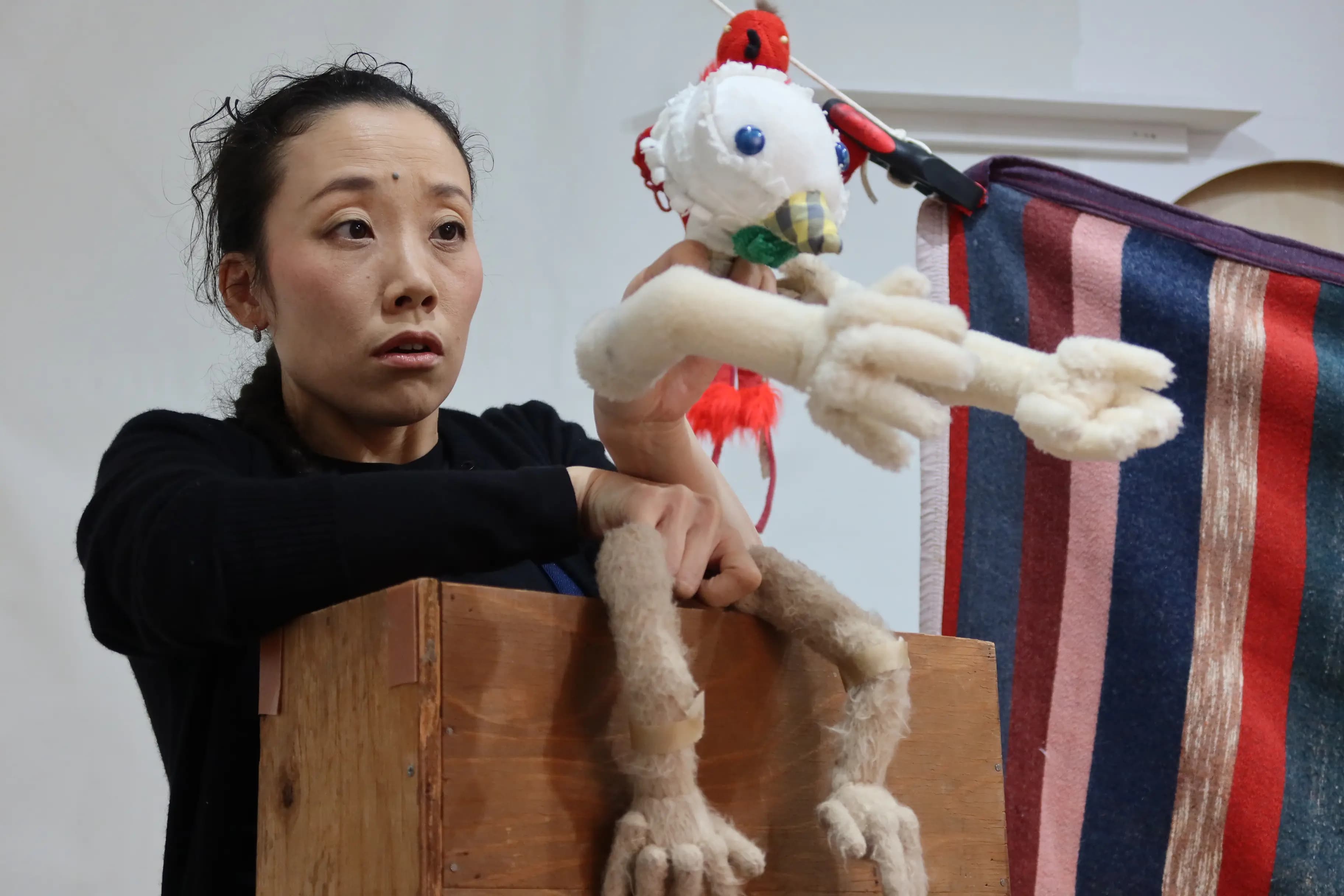 ...部屋で空想をふくらませよう。ファンタジーはささいなきっかけで踊り出す...人形遣いとアコーディオン奏者がお送りする旅する音楽人形劇。現れたのは鳥男に色とりどりのモンスター。こどもも大人も!想像力とユーモアに満ちた部屋へどうぞ遊びにいらっしゃい。