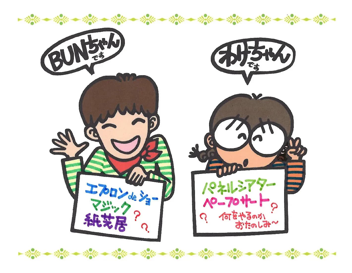 シアター など 38 パネルシアターやエプロンシアター、紙芝居やペープサートって、人形劇の前座や幕間の存在になりがち...でも今日はこれらが主役です!BUNちゃんとわけちゃんの面白コンビが、あれこれ上演します!何がでるのかお楽しみ!(うっかり人形劇をやったらゴメンナサイ)