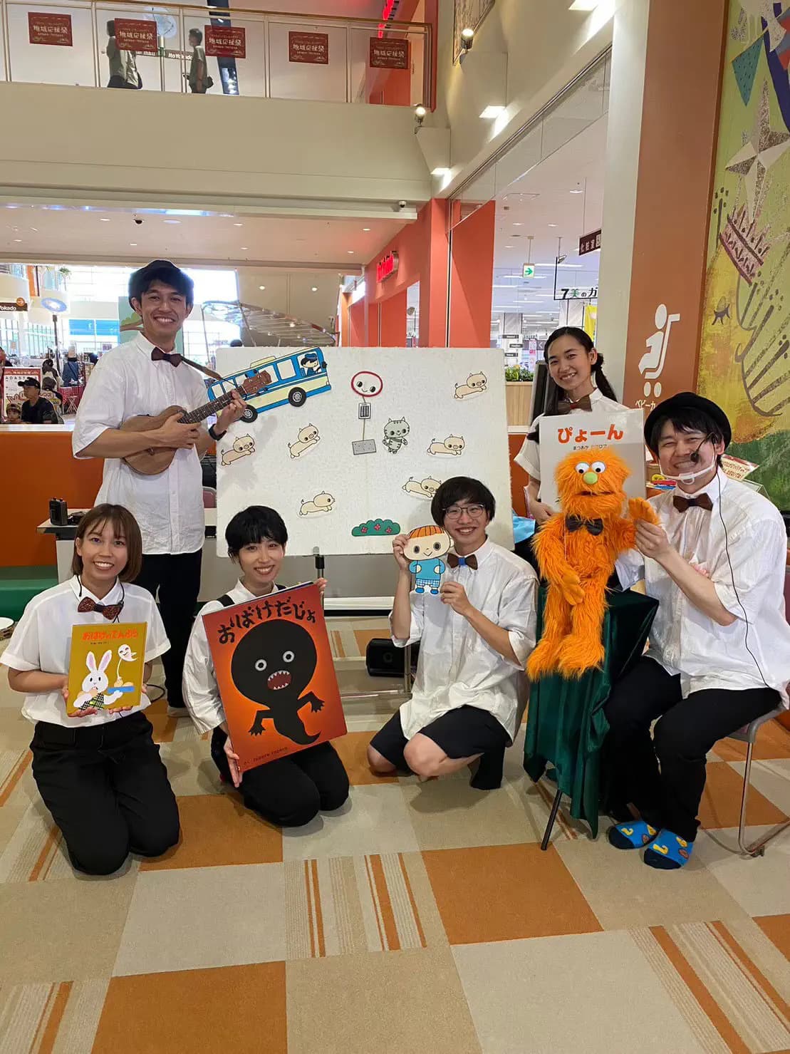 こんにちは!私たちは「おはなしらぼ」です。普段は商業施設や子育て支援施設、本屋さんのスペース等を借りて、絵本、パネルシアター、腹話術、音楽、手遊びなどを組み合わせた『おはなし会』をしています。それぞれのプロフェッショナルたちが集まり、一風変わったゆかいで賑やかなおはなし会をお届けします。ぜひ来てください。
