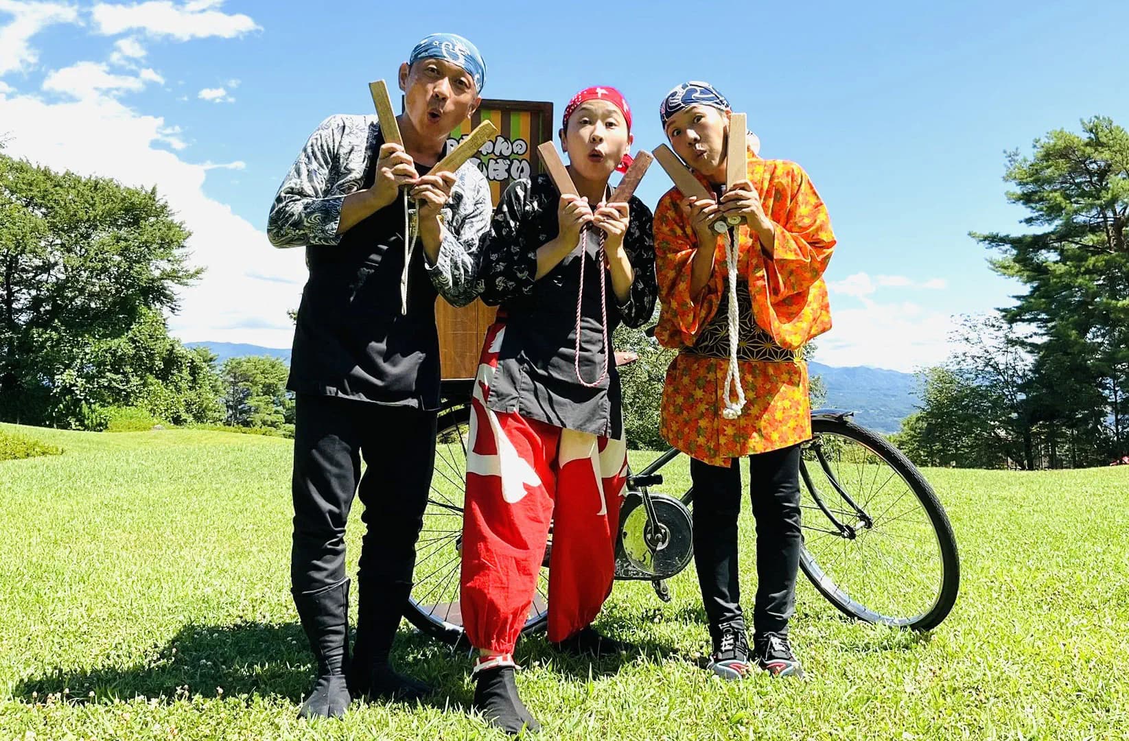 きむちゃんは、年々パワーアップし続ける『きむちゃんの華麗なる紙芝居』を、りさちゃん&たっちゃんは、「りさ&たつ 二人の紙芝居ショー」の中の演目、まるで人形劇のような紙・芝居『パルプフィクション』(演出:人形芝居燕屋 くすのき燕)を上演予定です。いいだの夏・チャレンジの夏!